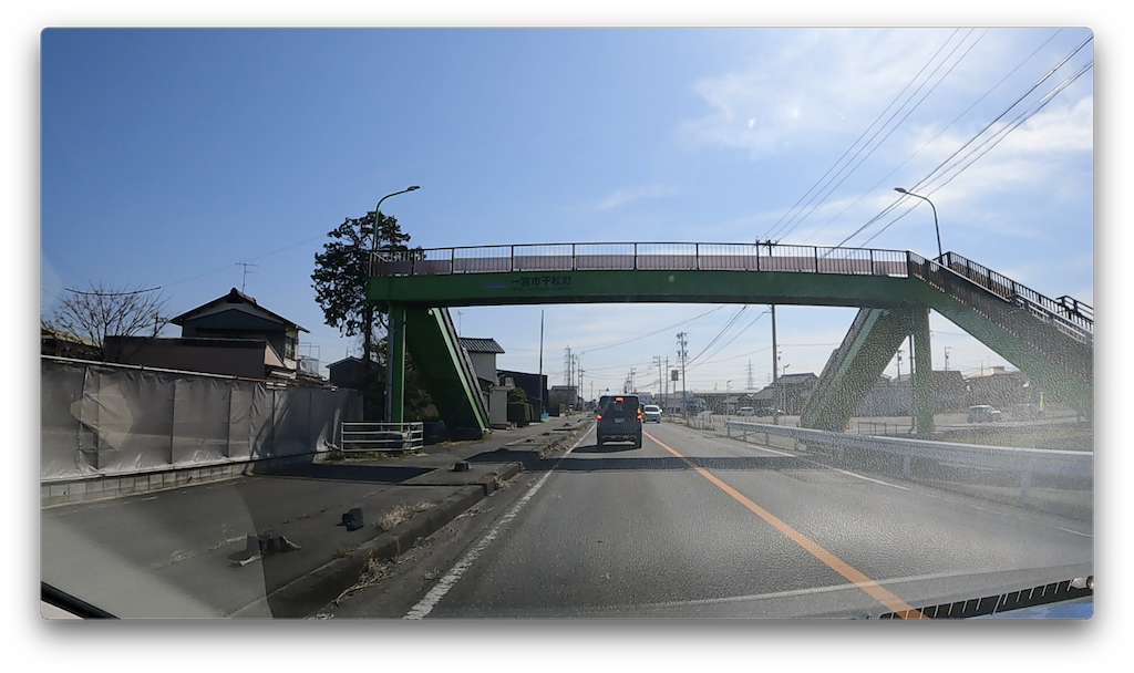 なんとなく道の大きさに対してやや不釣り合いな目立つ歩道橋を超えます。