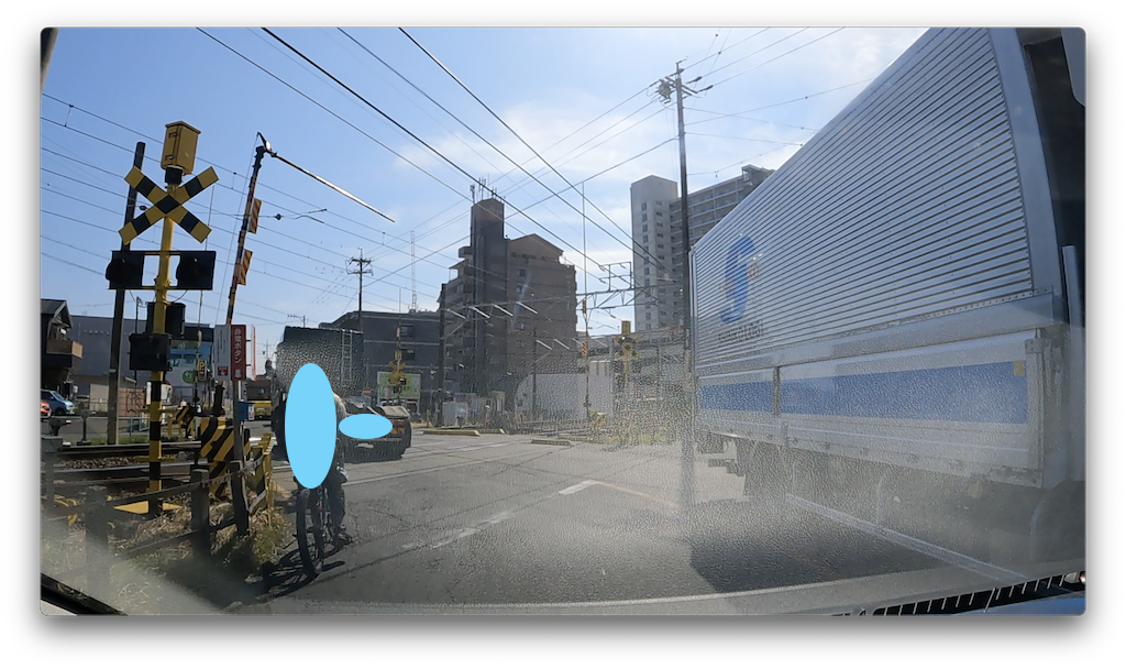 名鉄犬山線との踏切に突き当たります。この辺りは交通量、人通りともに多いので注意して進みましょう。