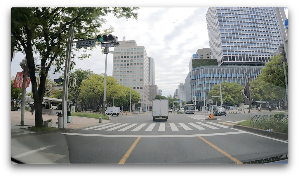 そのまま進みますと、名古屋のビジネス街代表、伏見に差し掛かります。こちらの広小路伏見交差点で国道19号伏見通と交差します。左には市営地下鉄の伏見駅の入り口が写っていますね。さらに進みます。