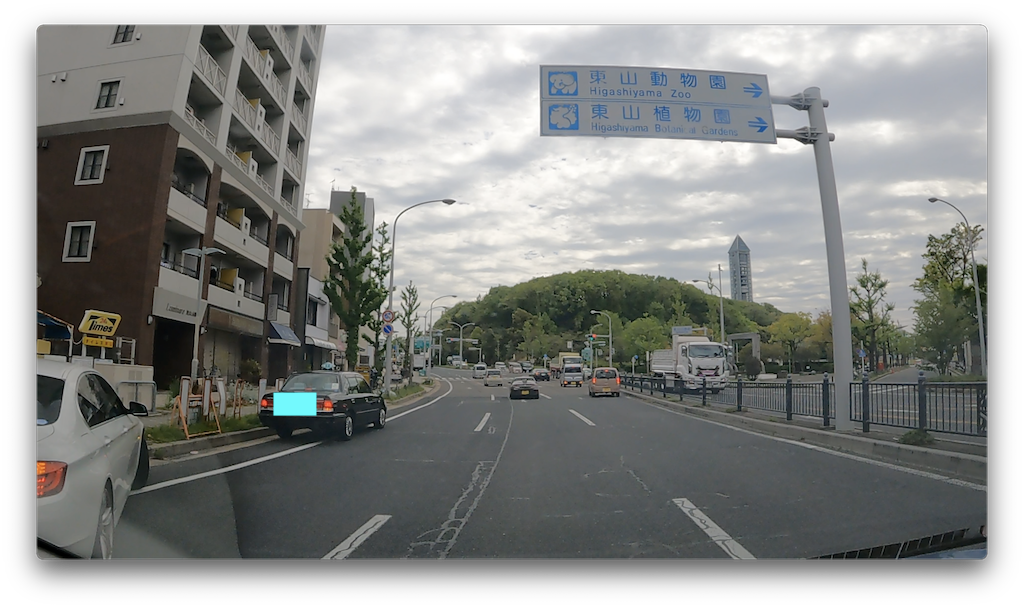 この1つ先の東山公園前交差点を右折すると東山公園の駐車場及び入り口方面ですね。